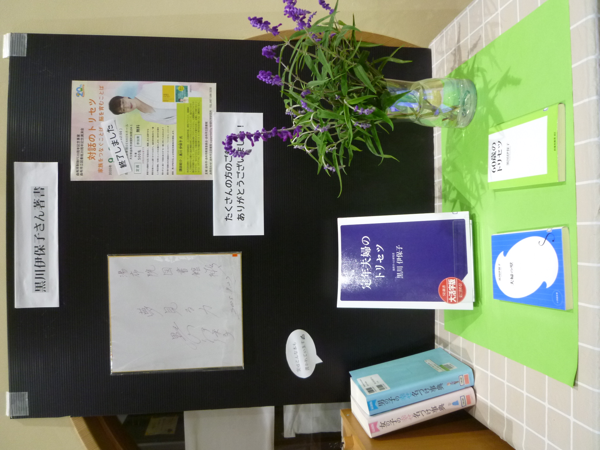 先日、由布市立図書館20周年記念講演を行ってくださった黒川伊保子さんのサインや著書の展示も行っています。(10月5日まで)こちらもぜひご覧ください。